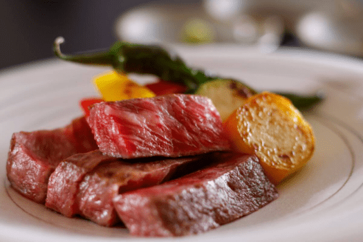 温泉宿の夕食でステーキやしゃぶしゃぶとして登場することが多く、肉の旨味が濃厚な「赤身」と、とろける「霜降り」のバランスが絶妙です。