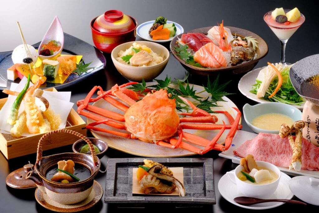 期間限定で「紅ズワイガニ食べ放題」や、紅ズワイを贅沢に使った会席プランが登場します。松葉ガニより手頃な価格で、お腹いっぱいカニを堪能したい人におすすめです。