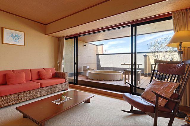 全室100%源泉掛け流しの天然温泉露天風呂付客室棟「湯の栖(ゆのすみか)」