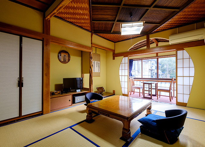 職人の技術が光る「円月窓」や、現在では再現不可能といわれる緻密な格子、網代天井など、建物自体がひとつの芸術作品のようです。