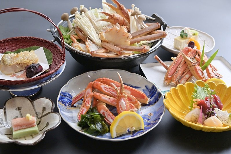 冬は松葉ガニ、夏は白いかや岩牡蠣など、山陰ならではの季節の味覚をお楽しみいただけます。